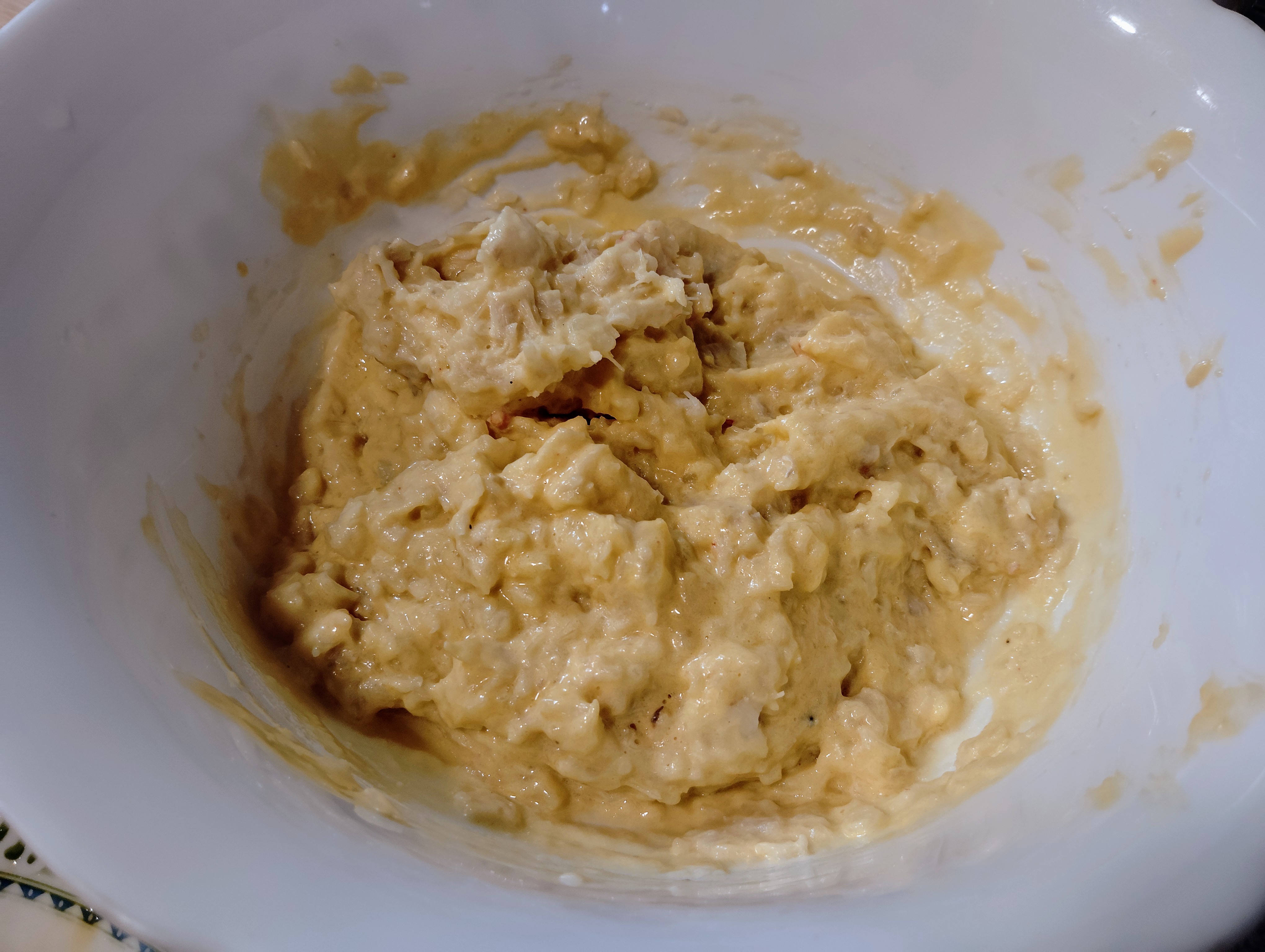 Para ello, en un cuenco echar la carne de las pintarrojas desmigadas procurando que no quede ningún trozo de su espina central, la cebolla picada en trozos muy pequeños, el perejil picado, una rebanada de pan remojada con la leche de coco que reservamos al principio de la receta, el huevo, salar al gusto y amasar hasta que se consiga una masa que no quede demasiado blanda. Si es preciso añadir una o dos cucharadas de pan rallado hasta obtener la consistencia deseada.
