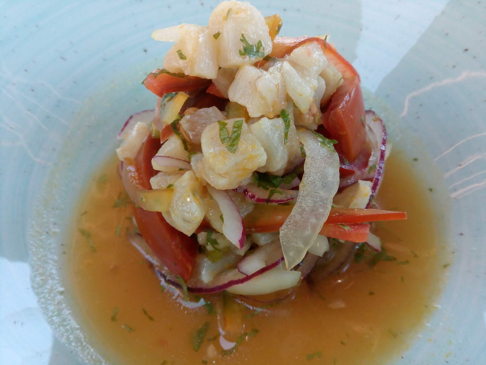 -Ensalada mediterránea con tomatitos, porra antequerana, sardina anchoada, naranja, aguacate, cebolleta y gazpacho (Pablo Castillo chef del Restaurante Savor de San Pedro Alcántara).